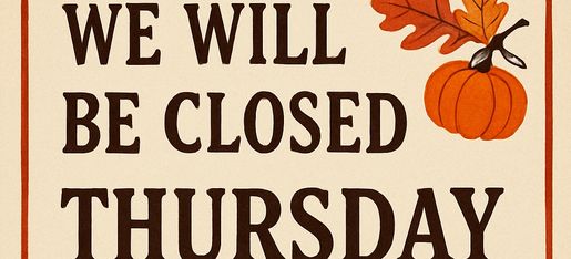 We will be closed November 27th. We wish everyone a safe and happy holiday.